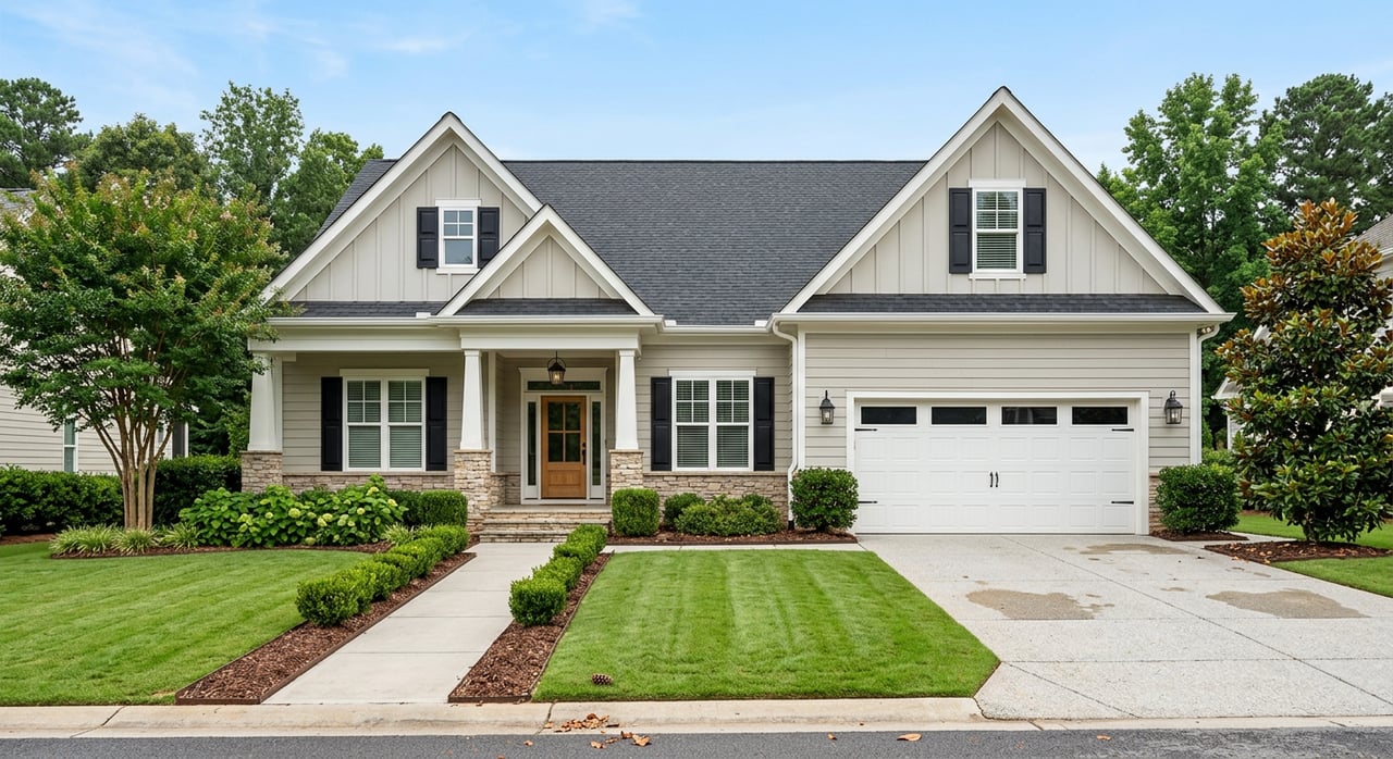 Simple style upgrades go a long way: a freshly painted front door, paired containers at the entry, crisp edging, and clear, well‑lit paths.